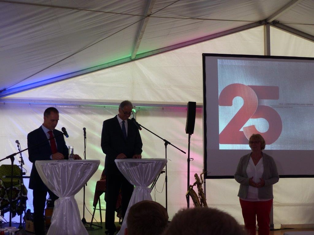 Am 22. September war es soweit. Ab 16 Uhr feierten wir unser 25-jähriges Jubiläum auf dem Firmengelände mit fast hundert Mitarbeitern und Gästen, die alle in einer engen, vertrauensvollen Beziehung zu uns stehen, sei es als Kunden, Architekten, Subunternehmer, Lieferanten, Dienstleister…, teilweise über Jahrzehnte.Es gab Quizfragen ans Publikum, z.b. bezüglich der Anzahl der in 25 Jahren abgewickelten großen und kleinen Aufträge (mehr als 4000) oder der Fläche des Firmenareals (5.500 qm).