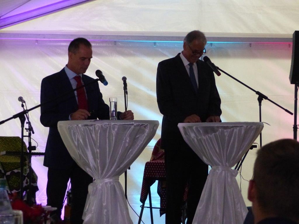 Doch unser geschäftsführender Gesellschafter Franklin Müller und sein Partner Ulrich Tapper hoben vor allem die Bedeutung der vielen langjährigen Mitarbeiterinnen und Mitarbeiter für den Erfolg des Unternehmens hervor, indem sie sie einzeln auf die Bühne baten und ihre Verdienste, ihre Loyalität und hervorstechende Charaktereigenschaften würdigten, wobei auch humorvolle Seitenhiebe und Episoden nicht fehlten. Immerhin stehen 15 Mitarbeiterinnen und Mitarbeiter seit 10 bis 25 Jahren treu zur Firma.