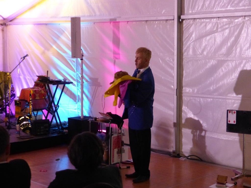Der gemütliche Teil der Veranstaltung wurde mit einem großen warm/kalten Buffet eingeläutet, bei dem für jeden Geschmack etwas zu finden war. Schon während des Essens sorgte ein Comedian incognito als komischer Kellner für Unruhe und Überraschungen und verblüffte im Anschluß auf der Bühne mit erstaunlichen Zaubertricks, die auch so manchen Gast mit einbezogen. Acki (Saxophon) und Mick (Gitarre) begeisterten als Live-Musiker, Moderatoren und DJs und sorgten dafür, daß bis in die späte Nacht unentwegt das Tanzbein geschwungen wurde. Die letzten Akteure verließen angeblich erst gegen drei Uhr morgens den Tatort.
